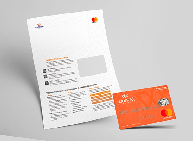Desenvolvemos para a empresa de tecnologia, Wenext, um cartão premiação personalizado. Através dele, eles promovem premiações mensais para os melhores desempenhos de vendas em campanhas internas. O layout do cartão e a homologação dele junto à Mastercard foi realizado pela equipe de especialistas MapiGroup.
